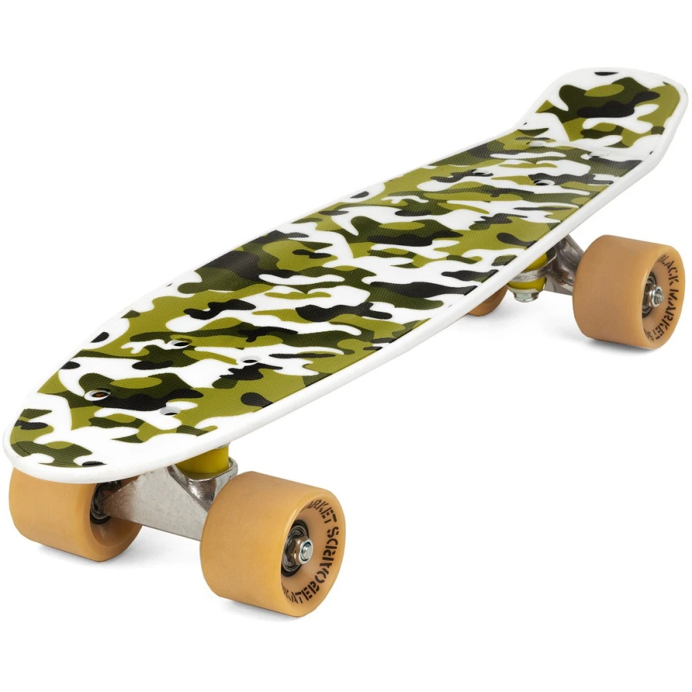 Скейтборд в цвете хаки выглядит современно на фоне других, рассчитан на грузоподъемность в 80 кг, имеет размеры 22″ (56*15 см), достаточные для размещения обеих стоп. Пластиковая дека, полиуретановые колеса и алюминиевая подвеска обещают пользователям долговечность и длительное сохранение первоначальных характеристик. Товар представлен компактными эргономическими характеристиками, легкий по весу. Поэтому вопросов с самостоятельной транспортировкой у детей не возникнет.