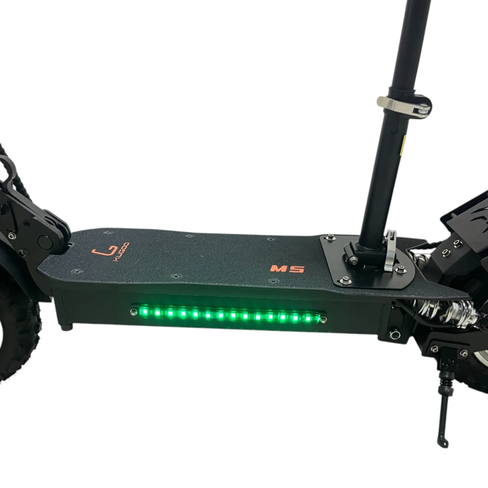 ЭЛЕКТРОСАМОКАТ KUGOO M5 (KIRIN). Отличный выбор для уверенных и смелых водителей! На дорогах с этим самокатом вам не будет равных. Широкие, мощные, рельефные  колёса 11 дюймов в диаметре, не только акцентируют вас на дороге, но и обеспечат комфортную поездку по бездорожью. Фары и светодиоды ярко выделят транспорт в темное время суток. Для удобного и безопасного расположения ладоней, ручки электросамоката прорезинены, имеют интересный узор. Вес электросамоката 35 кг, в случае необходимости его можно сложить.