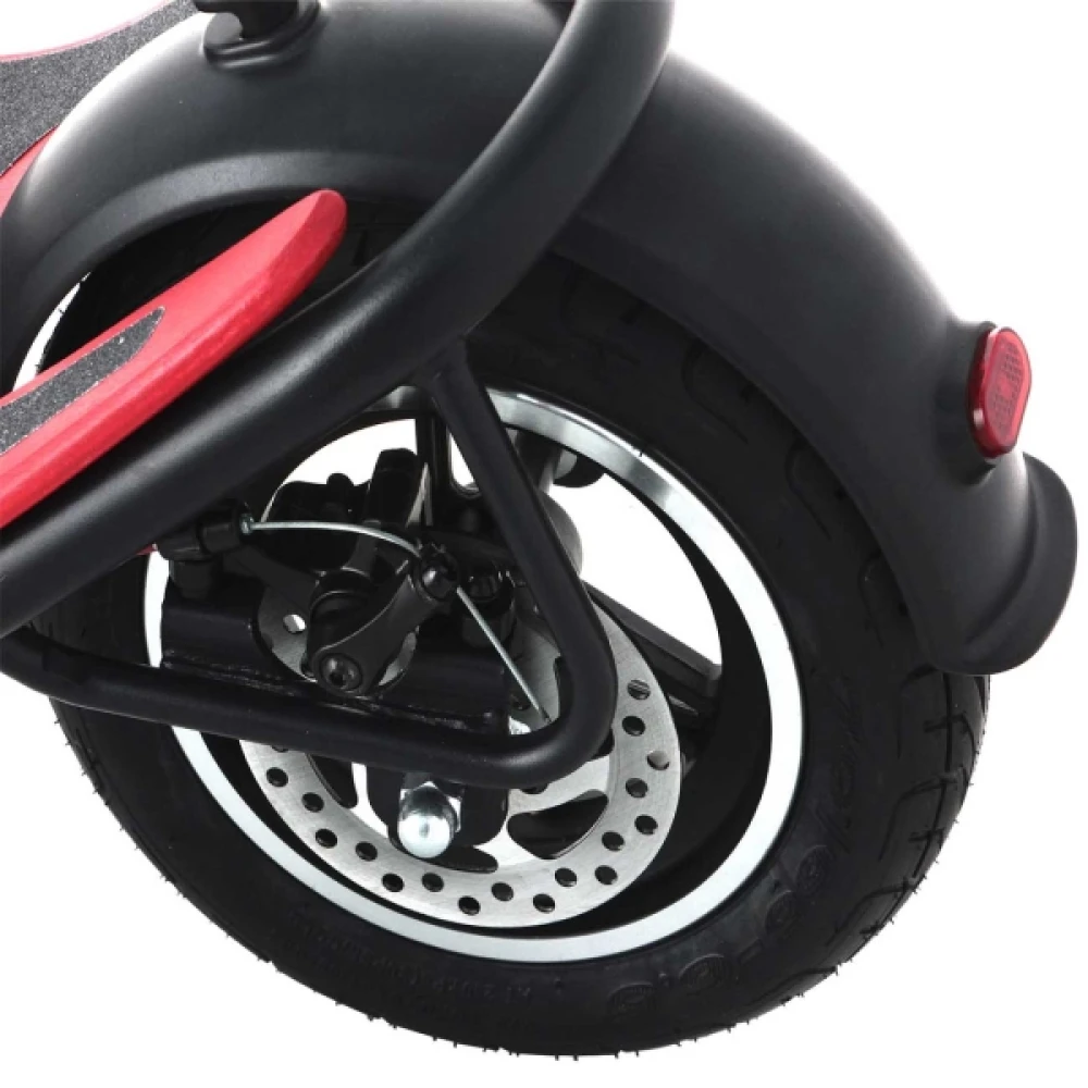 Диаметр колес электросамоката составляют 10 дюймов, что обеспечивает плавное движение по различным дорогам. Вы легко преодолеете такие препятствия, как трещины и неровности асфальта, низкие бордюры и «лежачие полицейские».