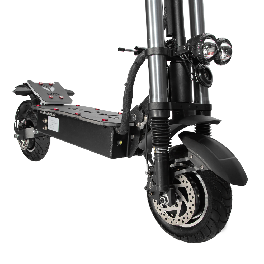 Электросамокат Syccyba R11 Mini 60V 33.6Ah – модель по максимуму наполнена комфортом и удобством. Практичная для повседневного и активного время провождения. Купить технику по лучшей цене, без вмешательства перекупщиков предлагает наш интернет-магазин. Перед принятием решения производитель рекомендует изучить плюсы и минусы, сделать правильные выводы. Модель весом 44,3 кг рассчитана на максимальную грузоподъемность до 150 кг. Подходит пользователям с лишним весом и райдерам, предпочитающим комфорт. Наличие удобного регулируемого седла увеличивает практичность модель. Снимает усталость с позвоночника, исключает дискомфорт. Большая вместительная платформа покрыта нескользящим материалом. Исключает отечность стоп при длительной езде. При максимальной мощности электродвижка в 3360 Вт максимальные скоростные параметры составляют 70 км/час. Запаса хода достаточно для продолжительной езды. Модель оснащена 2 зарядными на 3А, которые находятся в комплектации. Время полной зарядки составляет 6 часов. Гидравлическая тормозная система обеспечивает своевременность остановки. Контроллеры на 28 А – синусные, обеспечивают защиту от межфазного замыкания. Наличие светодиодных фар и жк-дисплея дают возможность езды в вечернее время и непогоду, контроля за техническими параметрами. Удобная подножка позволяет парковаться в труднодоступных местах. Для оформления заказа предлагаем связаться с нашим менеджером.