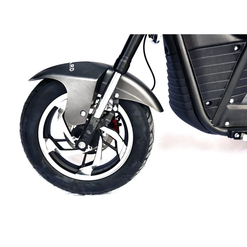 Электроскутер оснащен мощным мотор-колесом на 3950 Вт, емкой батареей на 50 А*ч, которые способны выжимать скорость автомобиля – 79 км/час, мощи которых достаточно на преодоление расстояния 110 км. Батарея заряжается быстро, для полной зарядки достаточно 5 часов. Колесная часть 13 и 12-дюймовая, бескамерная, надувная с давлением 2,7 атмосферы.