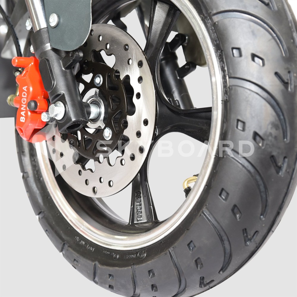 Емкость аккумулятора составляет 40А 60V, и его заряда хватит на поездку длиной до 65 км. Мощность электромотора составляет 3950W, что позволяет электромотоциклу развивать скорость до 67 км/ч.