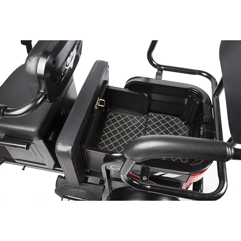 Большая вместительная корзина упрощают процесс перевозки личных вещей, продуктов. Широкая платформа для водителей и пассажиров не допускает усталости во время продолжительной езды. При необходимости пассажирское сиденье может трансформироваться и превращать диван в грузовой отсек.