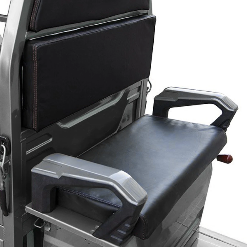 Использование высококачественного покрытия делает электротрицикл неуязвимым перед различными деформациями и повреждениями. Вилка и рулевая часть изготовлены из прочного металла. Пробег до 50 км на одном заряде допускается благодаря надежному аккумулятору. Главным козырем модели смело можно назвать наличие интеллектуального зарядного устройства. Для большей устойчивости на неровной дороге модель оснащена широкими колесами с протекторами.