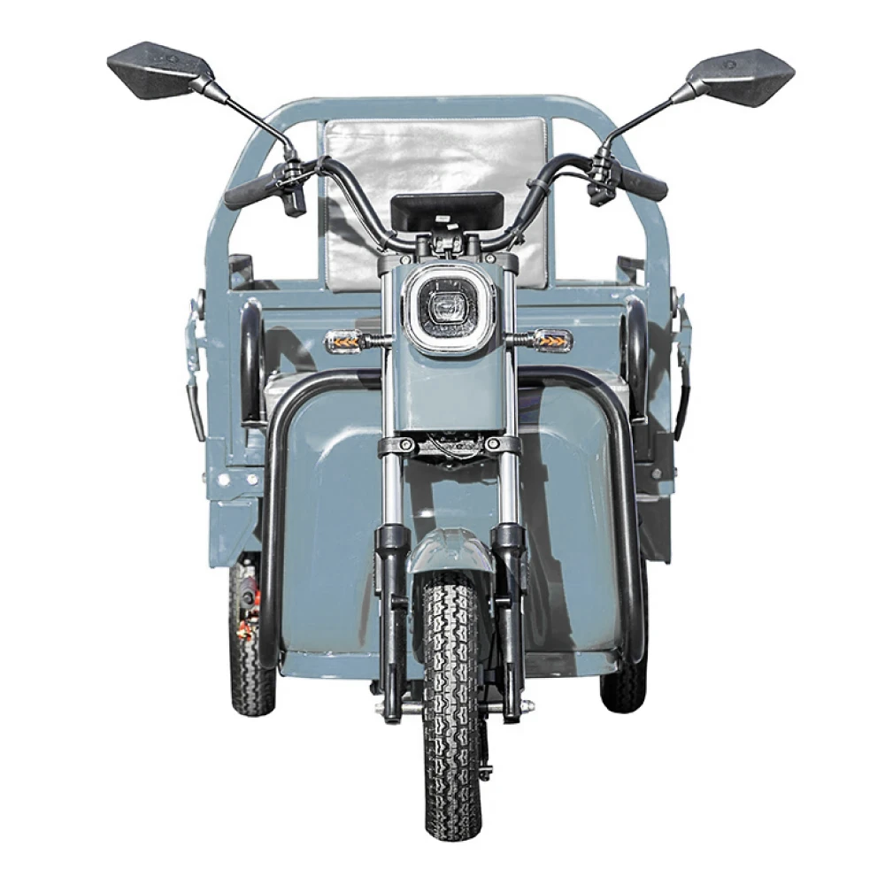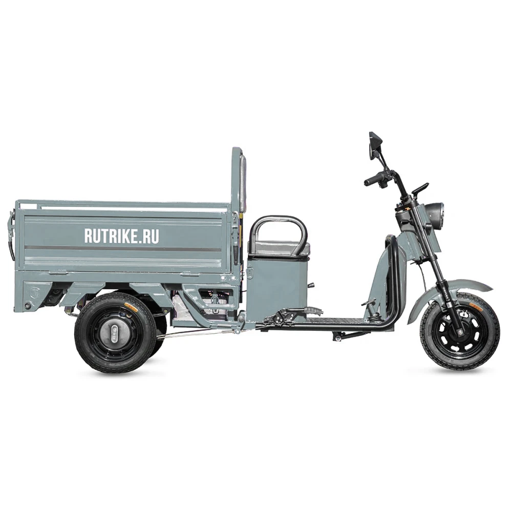 Грузовой электротрицикл Rutrike Амулет 1100 60V650W в сером цвете с мощным мотором, большим пробегом и удобным багажным отсеком является идеальным решением для тех, кто ищет надежное и эффективное средство для перевозки грузов на небольшие расстояния.