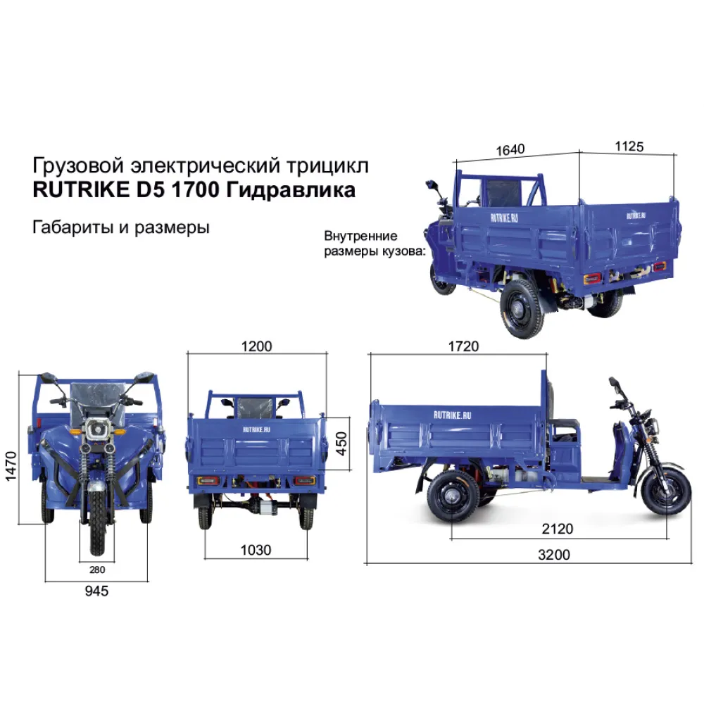 В общем, грузовой электротрицикл Rutrike D5 1700 гидравлика - это надежное, мощное и эффективное транспортное средство, которое станет отличным выбором для любых грузовых перевозок.
