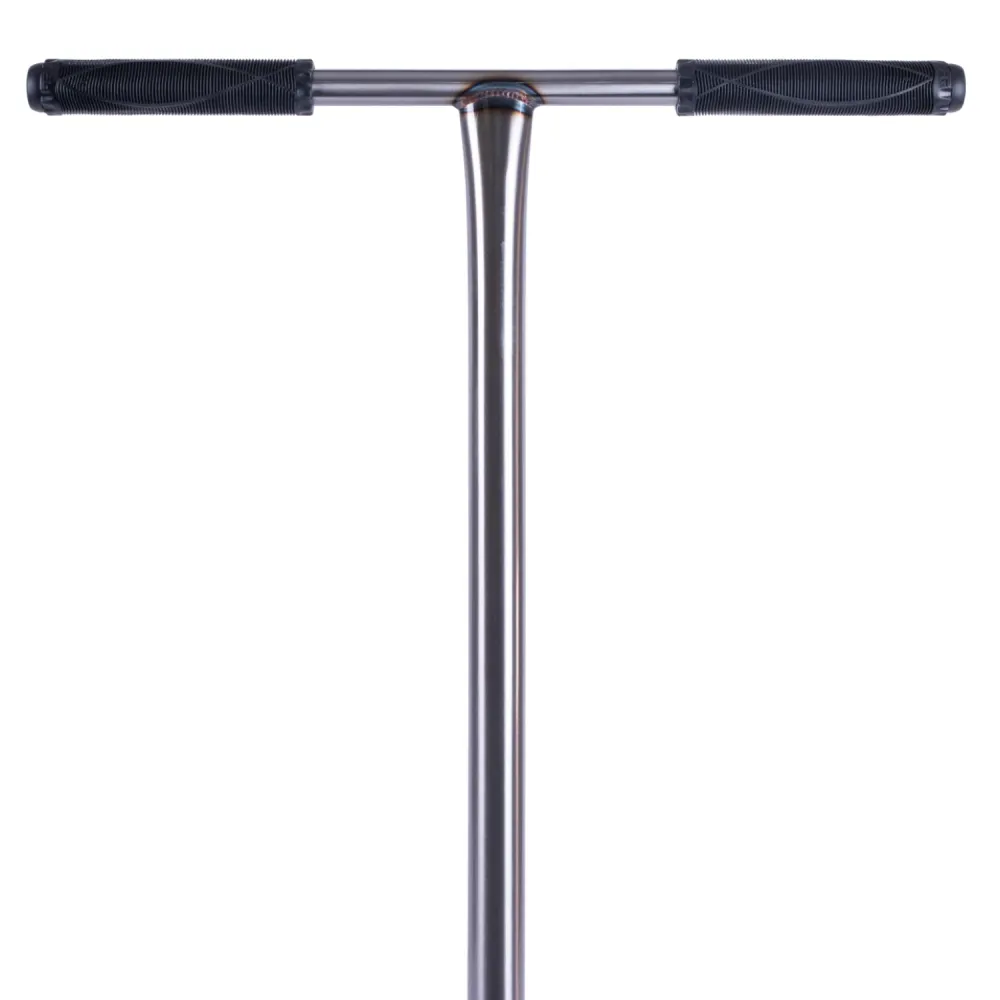 Прочный руль из стали с внешним диаметром 34.9 мм, высотой 615 мм и шириной 540 мм обеспечивает надежное управление и комфорт даже при интенсивных тренировках. Вилка из алюминия с системой компрессии SCS отвечает за качественное гашение ударов, что особенно важно при выполнении прыжков и приземлений. Дека, также выполненная из алюминия, с интегрированной рулевой системой имеет оптимальные габариты: ширина 140 мм, длина 490 мм и футспейс 340 мм – все это способствует правильному распределению веса и стабильности в процессе катания.