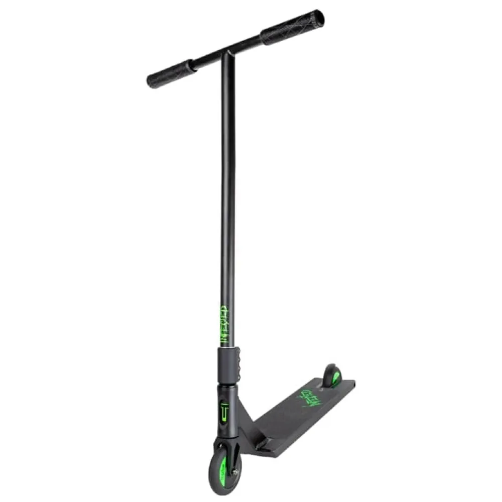 ТРЮКОВОЙ САМОКАТ INFECTED 2021 – модель изготовлена в классическом черном цвете, компактная и эргономичная, не имеет лишних деталей и наворотов. Предназначена для выполнения рискованных трюков с неограниченным количеством прыжков. Может использоваться в условиях двора и улицы, на асфальтовой ровной дороге. Предназначена для подростков и лиц старшего возраста с параметрами роста от 175 см.