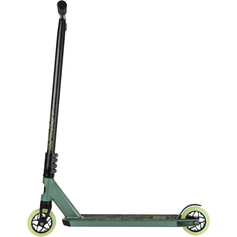 Производитель гарантирует надежность сборки, используя только фирменные детали. Повышенная комфортность техники обеспечивается благодаря удобной рулевой части. Резиновые накладки на руль самоката надежно закреплены. Имеют анатомически правильную форму, не скользят под руками. Трюковой самокат весом 3,75 кг позволит ощутить легкость передвижения и исполнения трюков. Приемлемая цена делает модель доступной для начинающих райдеров. Абсолютная безопасность самоката обеспечивается благодаря качественным задним ножным тормозам. Колеса диаметром 110 мм из прочного полиуретана позволяют прочно сцепляться с любой дорожной поверхностью.